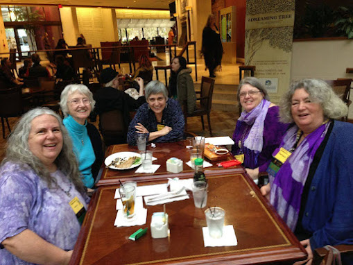 Planning the Skinner House Book for the Voices series at Pantheacon. Seated with Selena Fox, Shirley Ranck, Margot Adler, Jerrie Hildebrand, and Starhawk. (quite a few years ago)